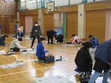 広々とした体育館で作品を書き上げます。