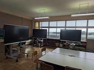 本日、本校に電子黒板が7台入りました。今までは3階と4階で1台ずつ譲り合って使用していましたが、今後は全ての通常の学級で自由に使えるようになりました。今後、全クラスで有効に活用していきます。