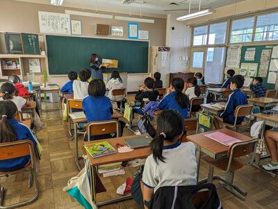 4年2組では、何もできないトラをネコが育てたところ、最後は・・・・というお話でした。隣の学級では、とても細かい描写の本だったため、児童が近くに移動し、身を乗り出して見入っていました。いつも楽しい読み聞かせをありがとうございます。11月22日には、はなやま学級での読み聞かせを予定しております。